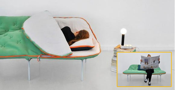 當你在沙發(fā)上坐久了會不會想躺著休息一會兒?但是專門拿一床被子有很麻煩。設計師巧妙地在沙發(fā)上安裝了拉鏈,你只需要拉下拉鏈,鉆進去睡就好,不用擔心會感冒!
