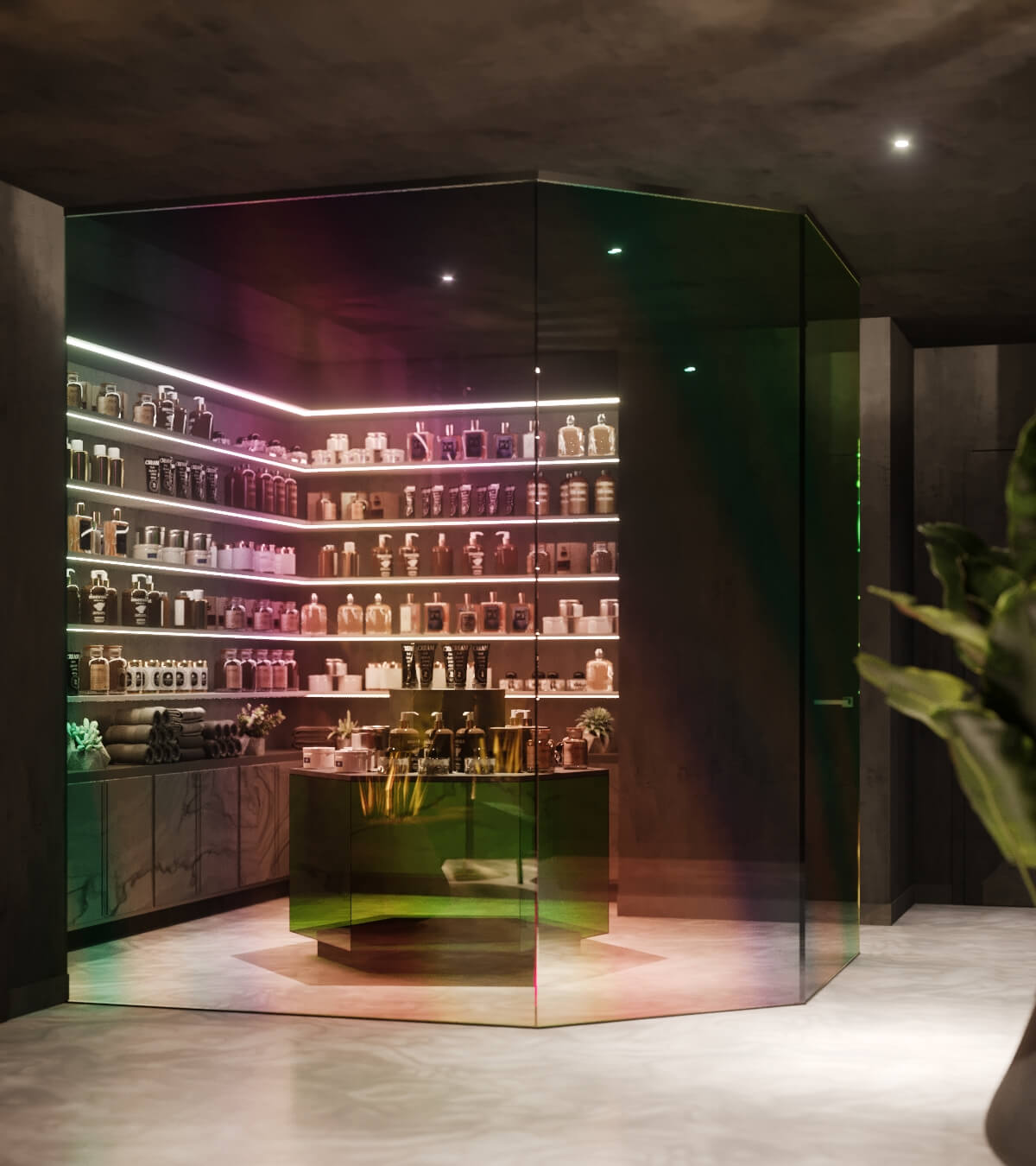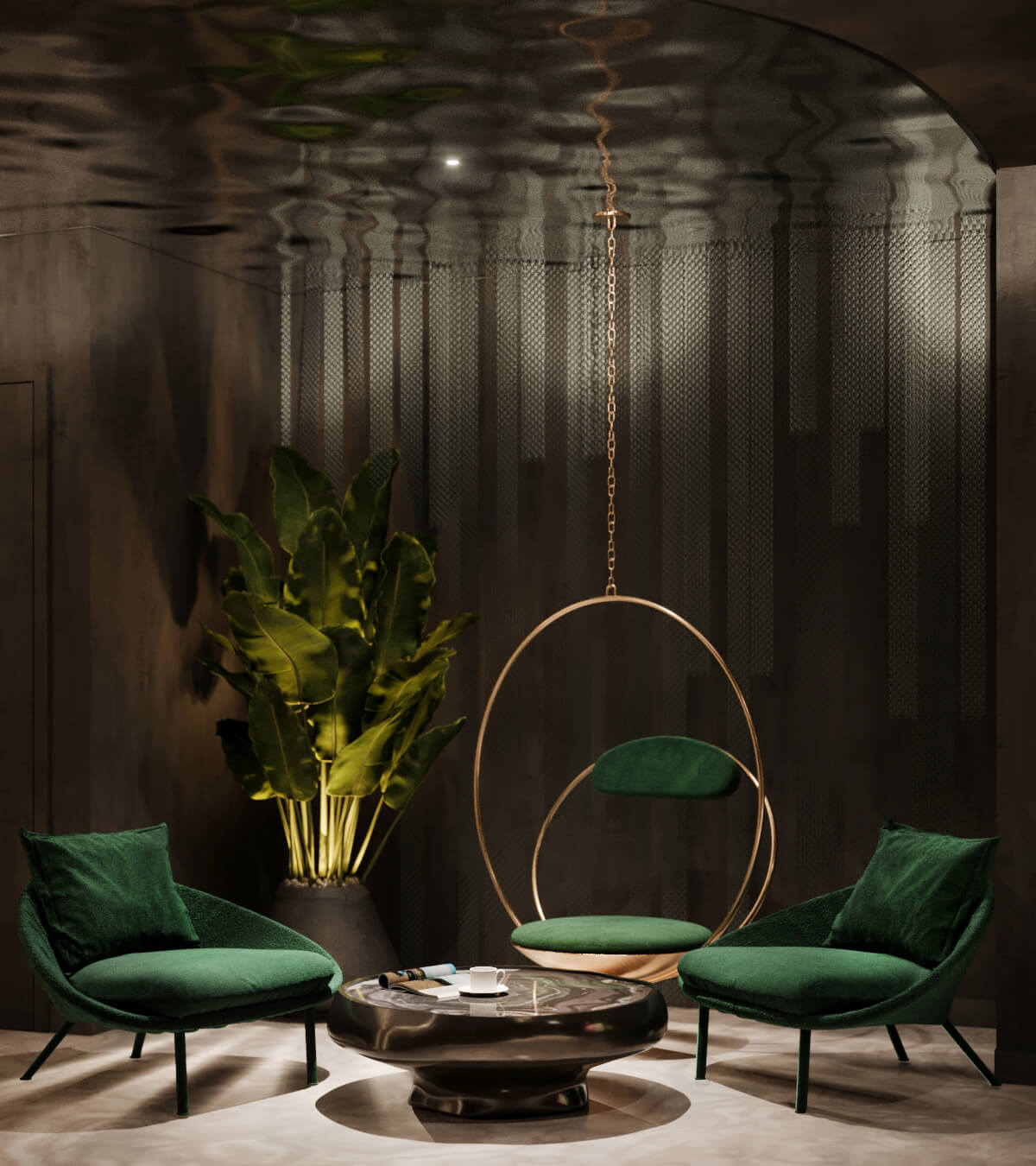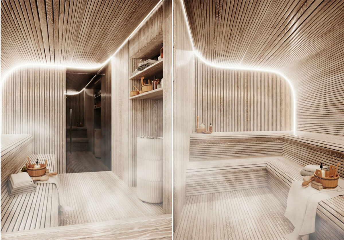 溫暖明亮的顏色鋪在地板,天花板上。墻上裝飾著光與影的效果。因此,空間可以根據(jù)一天中不同的時間,顯示不同的情緒。天花板上神奇的色彩讓舒適感填充整個空間。