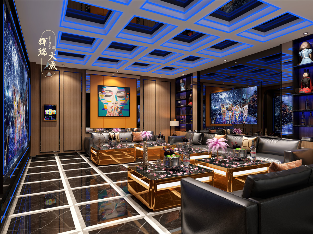 首先本次設(shè)計的主要方向是輕奢風格,這是一種趨勢和流行元素,在整體風格確定后就是要穿插與科技相關(guān)的KTV設(shè)計元素,在科技風中有柔和元素,采用的軟裝陳設(shè),壁畫,掛件等帶入些許現(xiàn)代的元素,能強化視覺沖擊力,要將其打造為當?shù)氐膴蕵沸碌貥恕?br />
